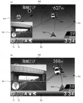 GPS検出器と、警報対象の位置情報を記憶する位置記憶手段と、位置記憶手段に記憶された警報対象の位置情報と、位置取得手段により取得した車両の現在位置が所定の接近関係を示す場合に表紙部6のメイン表示領域R1等に警報出力する制御部を備える。さらに、警報対象に至る経路を走行中に運転者が視認可能な位置にある目印対象の位置情報とその目印対象を運転者が特定するのに役立つ目印対象特定用情報(写真情報)とを記憶する記憶手段を備え、制御手段の報知制御は、記憶手段に記憶された目印対象の位置情報とGPS検出器により検出した車両の現在位置が所定の接近関係を示す場合、サブ表示領域R3に写真情報を出力する。