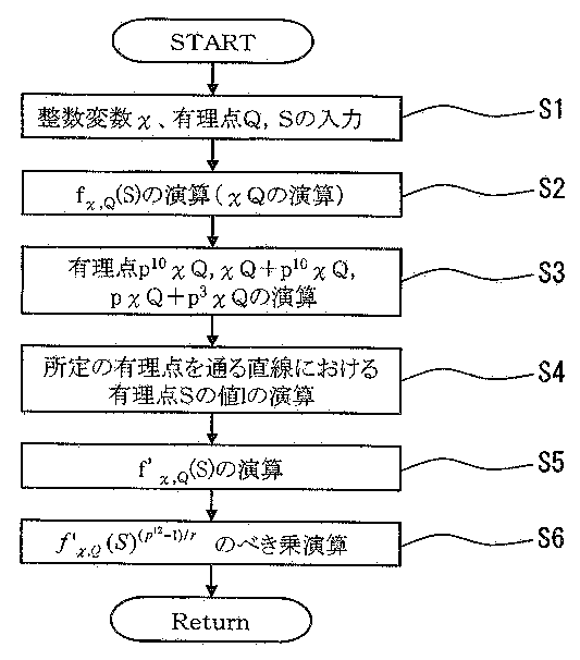 本技術は、高速なペアリング演算を可能としたペアリング演算装置、ペアリング演算方法、及びペアリング演算プログラムを提供する。具体的には曲線の式がy↑2=x↑3+ax+b,a∈F↓(p,)b∈F↓pで与えられ、埋込み次数がkで、F↓p↑kを定義体とするペアリング可能な楕円曲線上の有理点のなす加法群をE、素数位数rの有理点の集合をE[r]とし、ψ↓pをフロベニウス自己準同型写像として、位数rと、フロベニウス自己準同型写像ψ↓pのトレースtを整数変数χの関数とし、有理関数f↓(χQ)(S)を演算する演算手段と、所定の有理点を通る直線の有理点S(x↓s,y↓s)における値を演算する演算手段と、これらの演算手段の演算結果を用いて有理関数f↓(χQ)(S)を演算する演算手段と、有理関数f↓(χQ)(S)を用いてペアリング演算を行う演算手段と有するものとする。