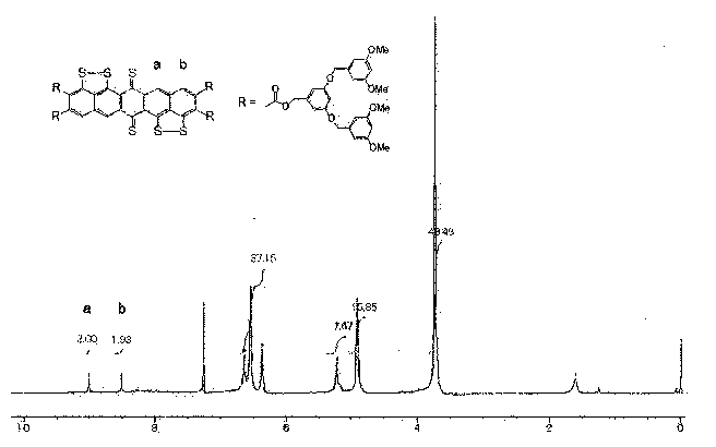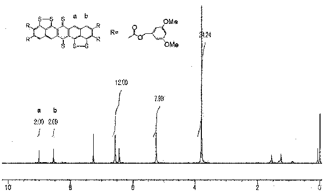 一般式で示されるヘキサチアペンタセン化合物[式中、R↑1、R↑2、R↑3及びR↑4は、それぞれ独立して置換基を有してもよい炭素数1~100の有機基及びハロゲン原子から選択される少なくとも1種である。]が提供される。このヘキサチアペンタセン化合物は、ペンタセン骨格の4,5,6,11,12及び13位に硫黄原子が導入されてなるため、安定性に優れるとともに、2,3,9及び10位に置換基を有してもよい炭素数1~100の有機基及びハロゲン原子から選択される置換基が導入されてなるため、高い溶解性を示す。このヘキサチアペンタセン化合物の製法は、ペンタセン化合物を有機溶媒中で単体硫黄と反応させることにより一般式で示されるヘキサチアペンタセン化合物を得ることができる。図に、ヘキサチアペンタセンデンドリマー化合物1aおよび化合物1bの↑1H NMRのスペクトル図およびCHCl↓3中における紫外可視吸収スペクトル図を示す。