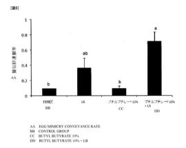1-ブタノール、2-ブタノール、またはそれらのエステル、ケトン、エーテル、カルボン酸、またはそれらの塩を含有するシロアリ誘引剤、およびシロアリ発育抑制剤、並びにシロアリの卵を模した基材に卵認識フェロモンおよびこれ等シロアリ誘引剤を含有せしめたシロアリ擬似卵が提供される。更に、シロアリの卵を模した基材に卵認識フェロモン、および殺虫活性成分、孵化阻害物質、生殖阻害物質、発育阻害活性成分、または昆虫病原菌からなる群より選択される成分を含有せしめた擬似卵の周囲に上記シロアリ誘引剤を設置し、卵運搬行動を利用して巣内に運搬させるシロアリの駆除方法、並びにシロアリ誘引剤をシロアリに与え、シロアリの行動を撹乱するシロアリの行動撹乱方法が提供される。図は、実験開始から24時間以内に巣内に運搬された擬似卵の割合を示す図である(異なるアルファベット間で有意差あり(Tukey-Kramer HSD検定)、ブチルブチレートを添加することにより添加しないものに比べて擬似卵の運搬活性を高めることができたが統計上の有意差は認められなかった。)。