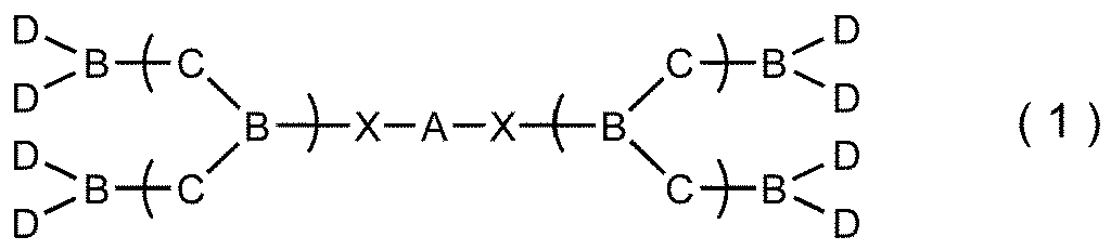 このデンドリマーは、一般式(1)で示されるもので、主鎖の鎖長が20~300の2価の脂肪族炭化水素基又は(-R↑1O-)↓n-R↑1-[R↑1は炭素数4~20の2価の脂肪族炭化水素基、nは1~20の整数]で示される2価の有機基からなるコアユニット(A)を有する。このようなコアユニットを有する一般式(1)で示されるデンドリマーは新規化合物である。一般式(1)中、Aの両側にある括弧内の構造は分岐構成単位を表し、この分岐構成単位は繰返し結合されていてもよく、Bは窒素原子又は3価の芳香族炭化水素基からなる分岐ユニット、Cは酸素原子又は2価の有機基からなる延長ユニット、Dはアルコキシ基、エステル基、アミノ基等からなる末端ユニット、Xは任意の構成単位であり、炭化水素基以外の2価の置換基である。一般式(1)で示されるデンドリマーからなる界面活性剤が好適な実施態様であり、このような界面活性剤からなるカーボンナノチューブ用分散剤が好適な実施態様である。また、一般式(1)で示されるデンドリマーを分散剤として用いるカーボンナノチューブの分散方法も好適な実施態様である。図は、デンドリマーの一般式、及び一具体例とその合成例を示す。