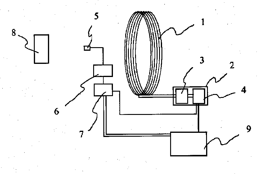 周波数が可変の交流磁場を発生させる印加コイルと印加コイル用電源とを備え、測定対象物によって生じた磁場の直交したベクトル成分で印加コイル面に平行なベクトル成分を検知する2つの磁気センサからなる少なくとも一組の磁気センサ手段を設け、印加コイル面から離して測定対象物に近づけるように配置し、磁気センサ手段の検出信号を計測する磁気センサ用計測回路を備え、この磁気センサ用計測回路の出力から印加コイルと同じ周波数の信号を検波するロックインアンプ回路を備え、このロックインアンプ回路の出力信号により磁気センサ手段の出力の強度と位相変化を解析する解析手段を備えた磁気的インピーダンス計測装置である。印加コイル又は一組の磁気センサ手段と測定対象物との距離を計測する距離計測手段を設けた磁気的インピーダンス計測装置である。測定対象物を計測した時の磁気センサ手段出力の強度と位相を解析する手段として、計測対象物の計測前あるいは計測後に計測対象物がないときの磁気センサ手段の出力の強度と位相を解析し、測定対象物による強度と位相からの変化解析する手段を設けた磁気的インピーダンス計測装置である。図は、この装置の基本構成を示す概略図である。